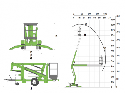 De Nifty lift 120 T is een uiterst geavanceerde en stabiele hoogwerker met 4 hydraulische en veilige steunpoten (voorzien van stempelplaten). Deze machine biedt u flexibiliteit en precisie, dankzij haar proportionele regeling tot 12 m hoog. Dit toestel werkt zowel op batterijen als op een voeding van 230 V.
