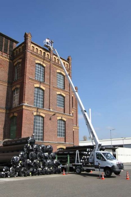 home | Schaarliften en hoogwerkers | HOOGWERKER OP BESTELWAGEN 23 M TELESCOPISCH (RIJBEWIJS B) Huren