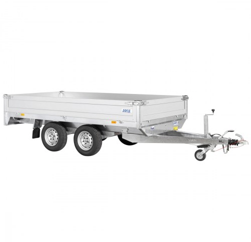 Aanhangwagen met neerklapbare en eventueel afneembare zijschotten voor het makkelijk laden en lossen van materialen door middel van heftruck of voor het laden van grote lasten. Kan gebruikt worden als verhuisaanhangwagen.